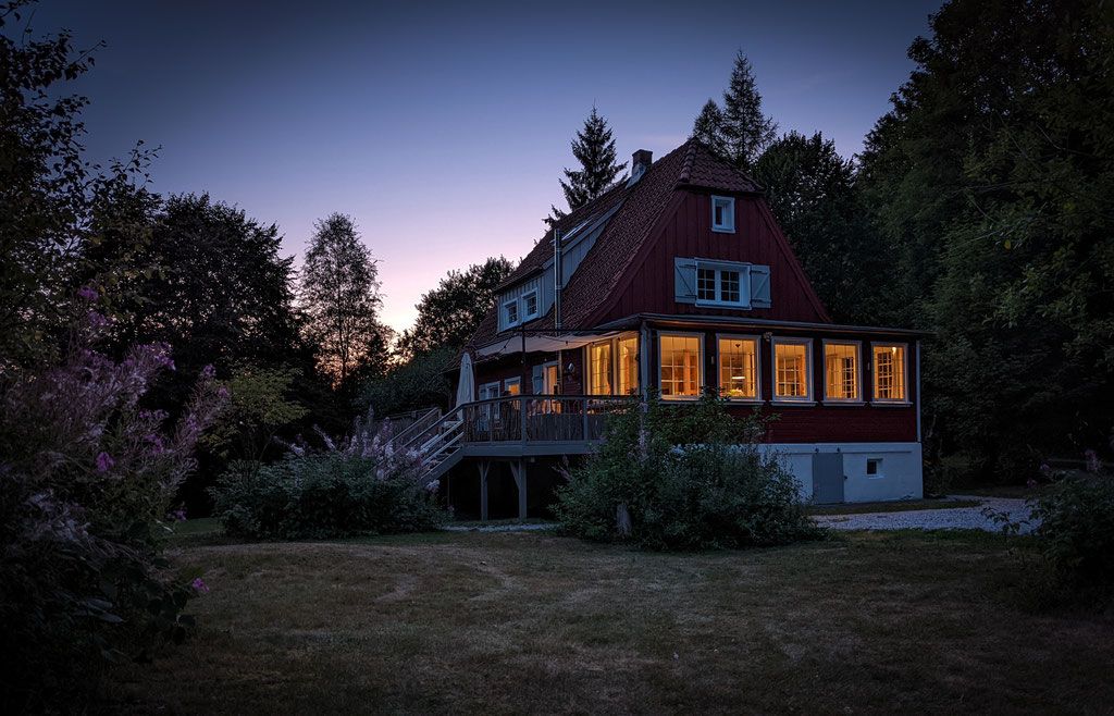 Das beeindruckende rote Haus im nordischen Stil, innen wie außen aus dem Naturmaterial Holz gestaltet, begrüßt seine Gäste schon von weitem. Man sieht das Haus und, bevor man es überhaupt betreten hat, setzt schon die Wohlfühlatmosphäre ein. Ein großer Naturgarten umschließt HERZHAUSEN.