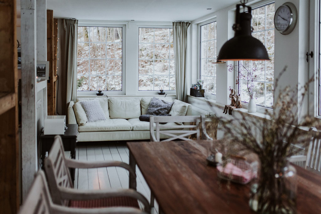 Der offene Aufenthalts- und Essbereich im Erdgeschoss kann mit einem Kaminofen geheizt werden und die vielen Fensterfronten ermöglichen überall wunderschöne Ausblicke ins Grüne - im Winter auf die verschneite Landschaft. Für Familien, befreundete Paare oder mehrere Generationen, die gemeinsam verreisen möchten, hält das Ferienhaus HERZHAUSEN insgesamt 5 Schlafzimmer, zwei gut ausgestattete Badezimmer und ein zusätzliches Gäste-WC vor.