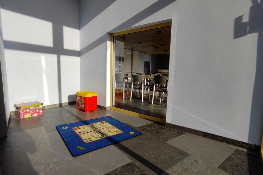 Diverse Freizeitangebote im Außenbereich: Kinderspielplatz zum Schaukeln, Rutschen und Wippen, Sandkasten, Soccercourt (Fußballplatz mit Kunstrasen und Beleuchtung) mit Spielfeldgröße von 7 x 14 Metern, Trampolin für Groß und Klein, überdachte Tischtennisplatte samt Schlägern und Bällen, ein Klavier und eine kleine Bibliothek.