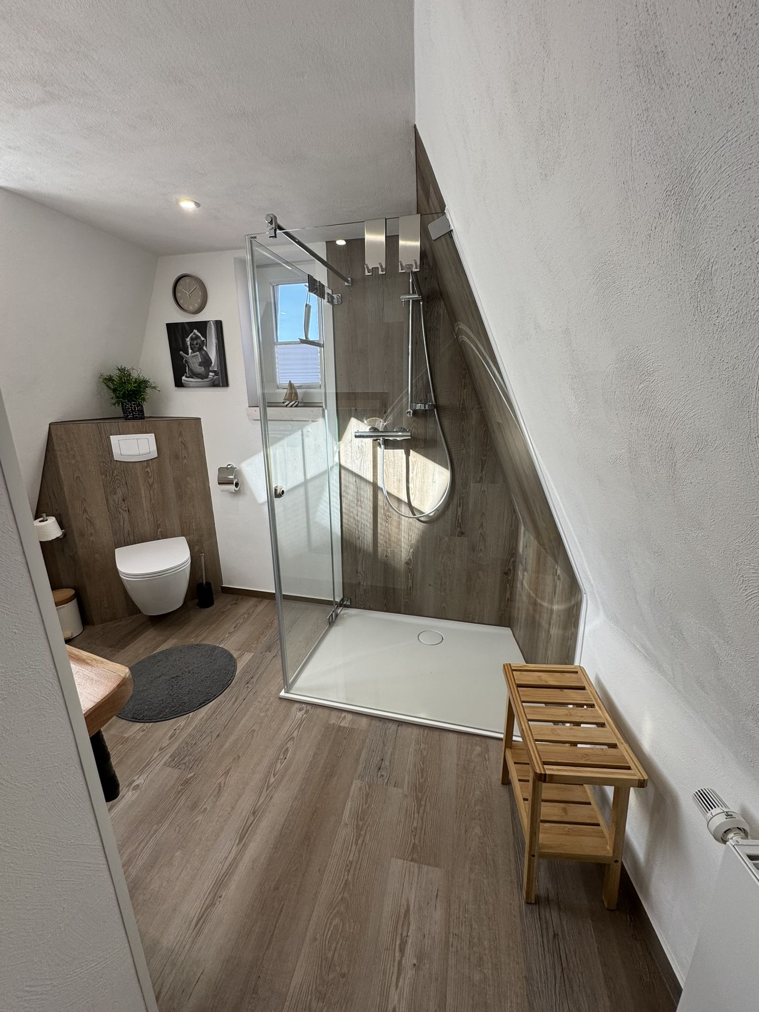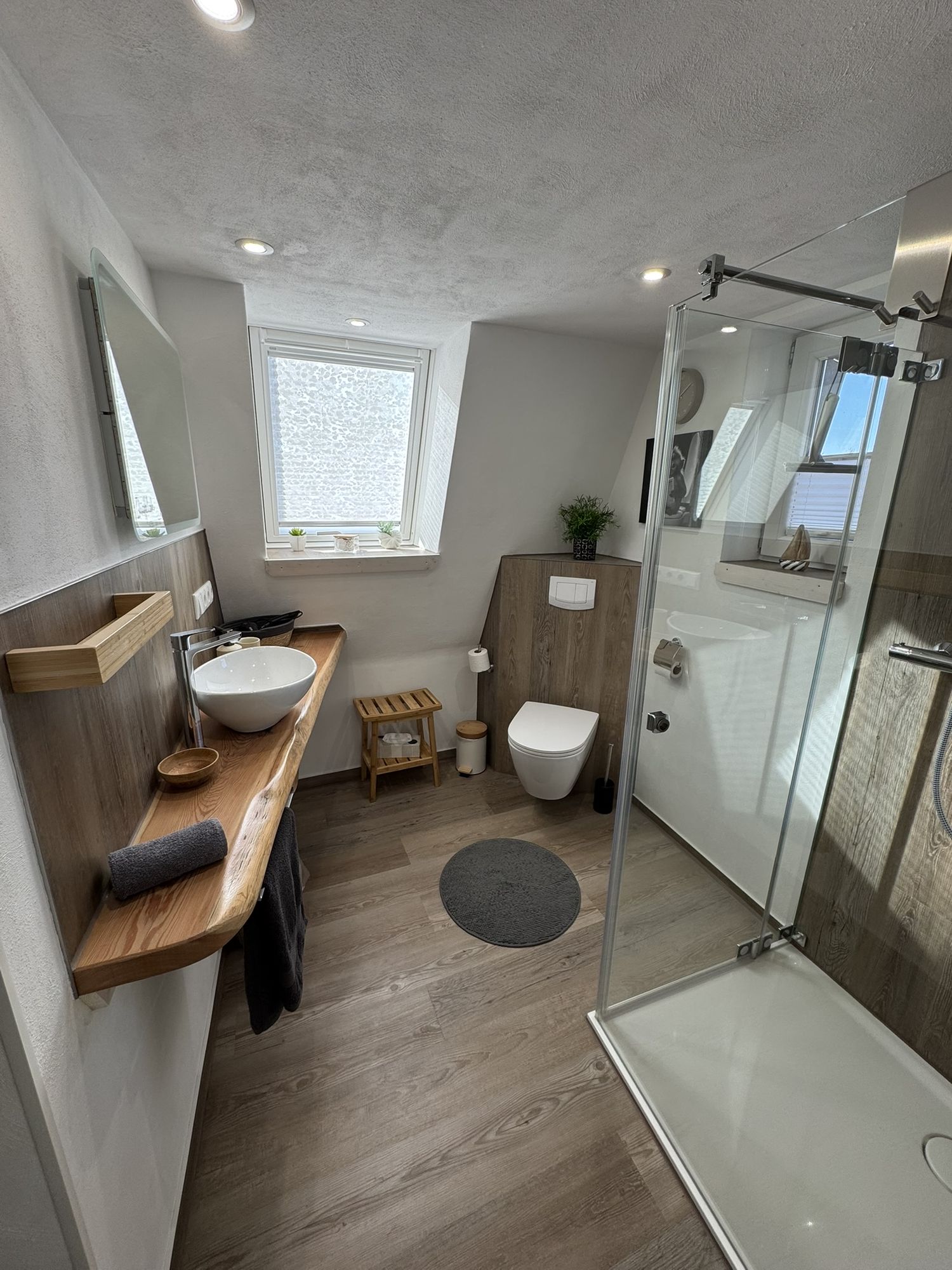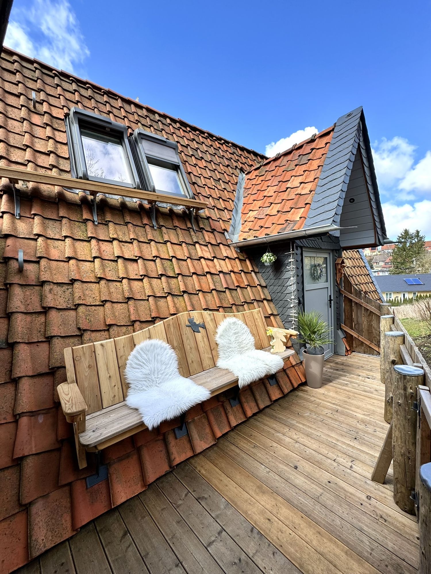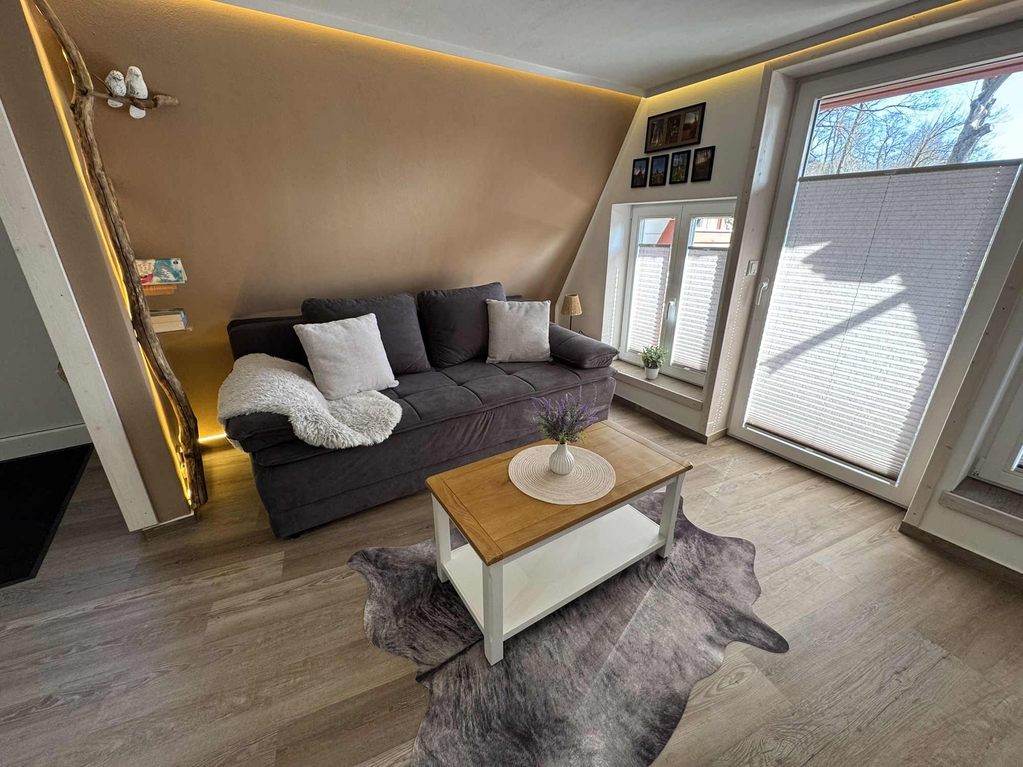 Freuen Sie sich auf den offenen Wohn- und Kochbereich, das moderne Bad und den kleinen, feinen Balkon. Ein ganz besonderes Highlight ist der Schlafbereich auf der oberen Ebene, der über eine Bodentreppe erreichbar ist (gute Mobilität erforderlich!). In klaren Nächten hat man das Gefühl, man liegt im Wald direkt unter den Sternen. Romantisch und einfach wunderbar!