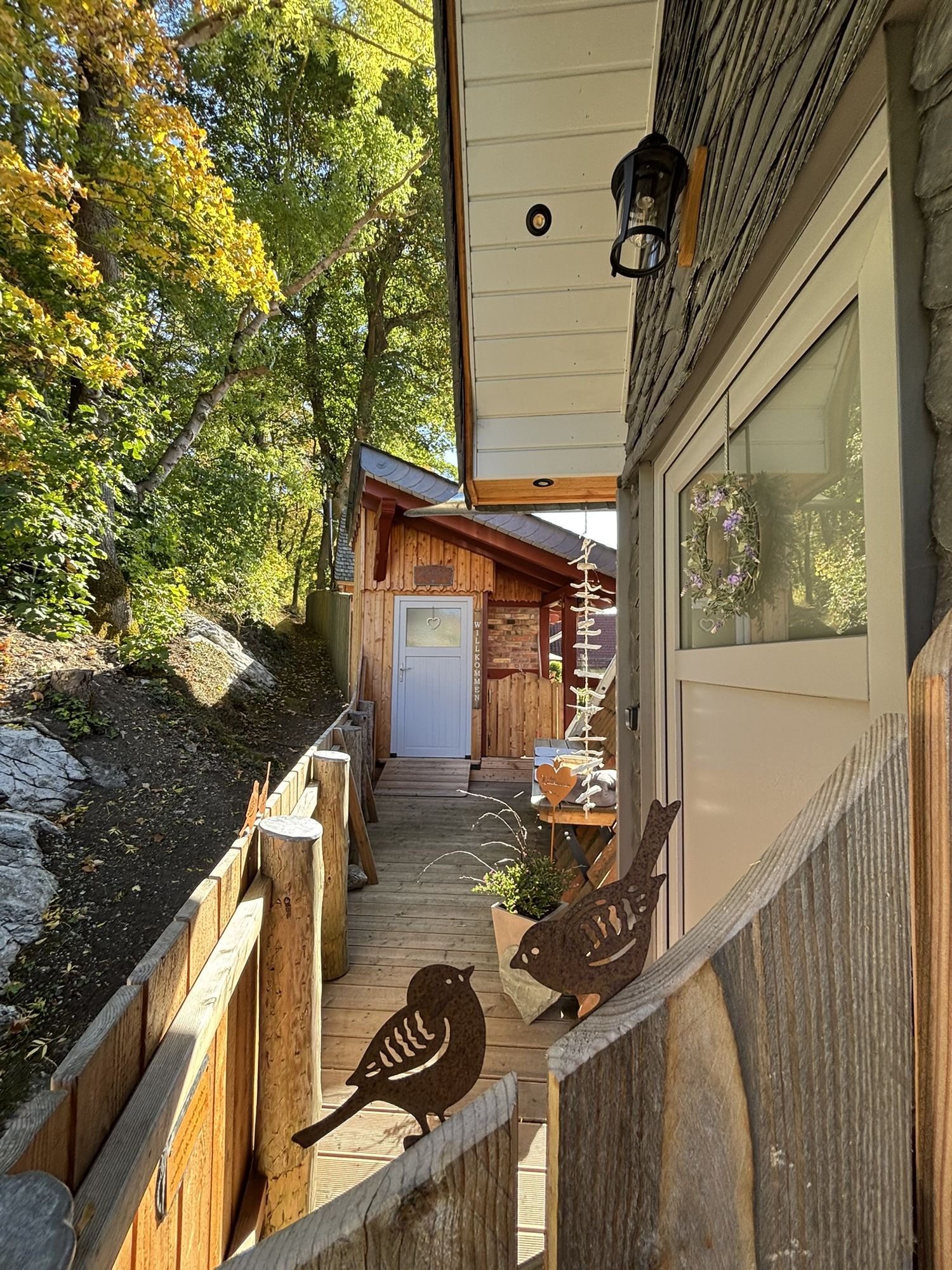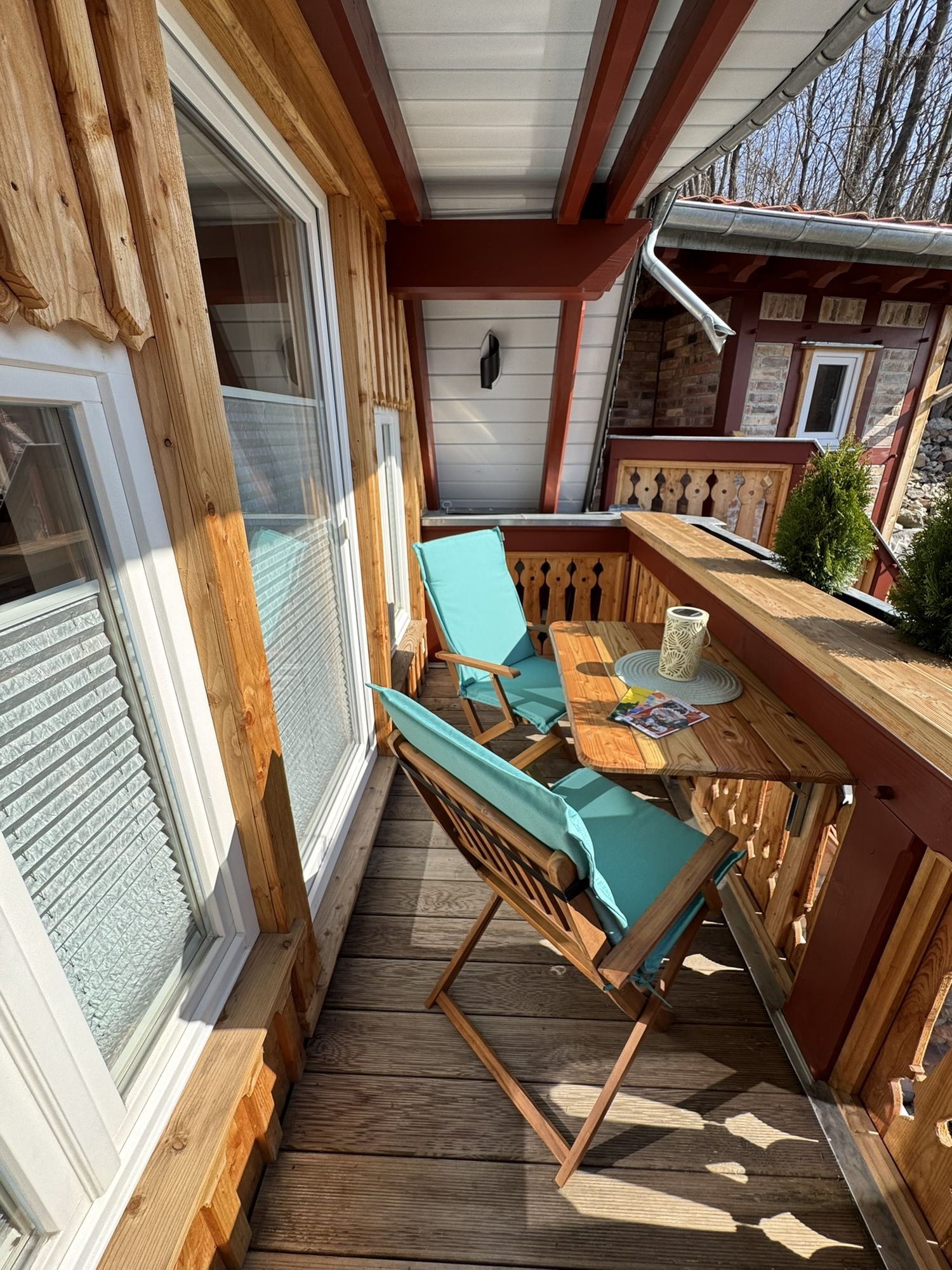 Die Entspannung beginnt oft schon mit einer Tasse Tee oder Kaffee - ob auf der Sitzbank vor dem Eingang mit Blick in den Wald oder auf dem Balkon mit Blick in den Garten.