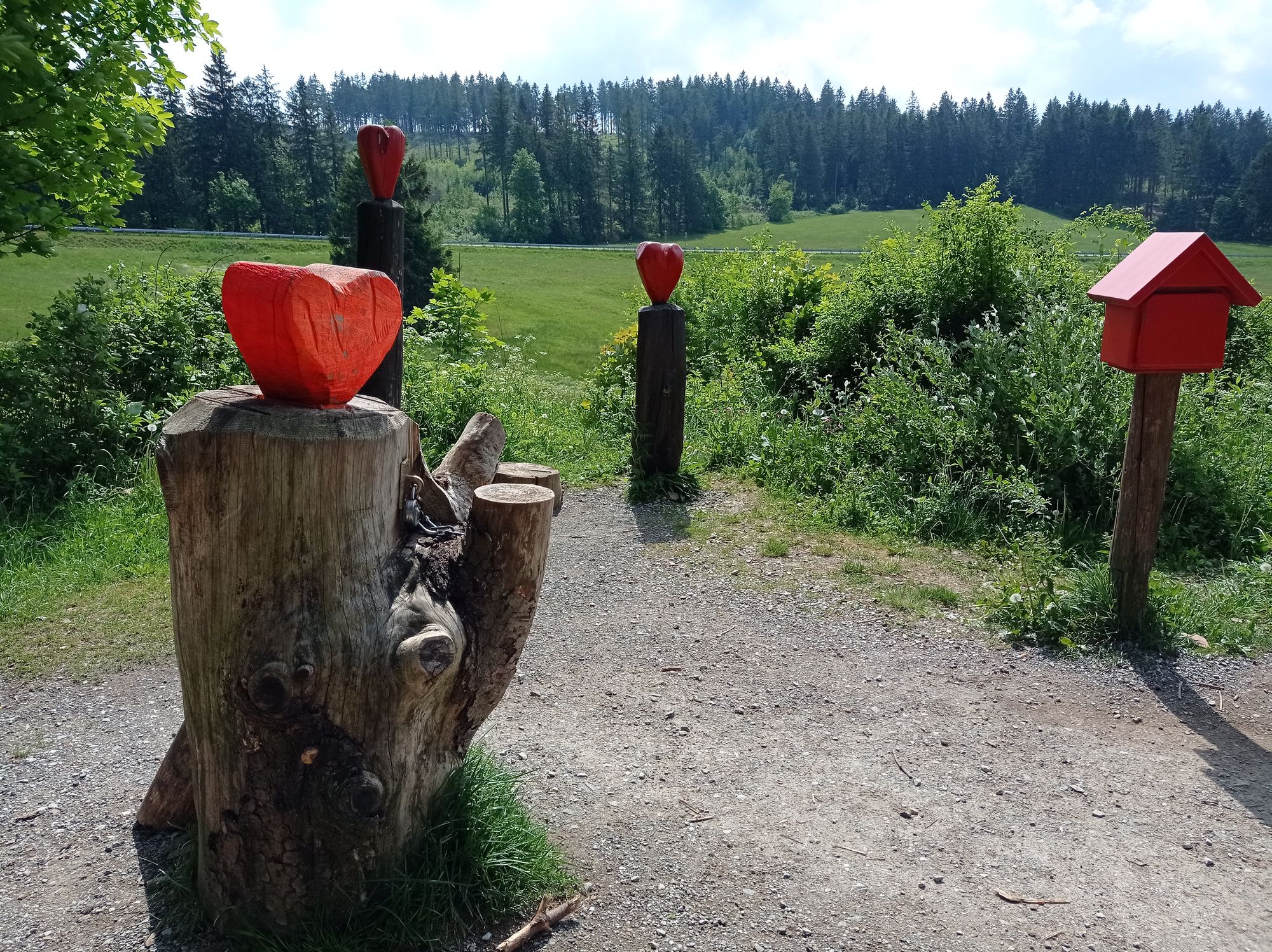 Auf Schusters Rappen unterwegs in Hahnenklee - Eine Wanderung über den Liebesbankweg.Folgen Sie Ihrem Herzen und erleben Sie auf sieben Kilometern das Juwel des weit verzweigten Wanderwegenetzes um den schönen Ort Hahnenklee. Es erwartet Sie ein individueller Rundwanderweg mit -liebevollen- Bänken und Verweilzonen, Erlebnismöglichkeiten für die ganze Familie, malerischen Oberharzer Stauteichen, bunt blühenden Bergwiesen und urigen Waldrestaurants, die zum Einkehren einladen. Dort wo einst der Hahn unter wild wachsendem Klee das Silber des Ortes fand und ihm seinen Namen gab, führt uns der Wanderweg direkt auf den Hausberg Hahnenklees. Ausgehend von der Stabkirche Gustav Adolf, mit ihrer malerischen Kulisse, über den Ort, kreuzen Sie die ehemalige Bob- und Rennrodelbahn, die Krähennest-Skiabfahrt und unterqueren die Trasse der Seilbahn (die Sie auf direktem Weg zum Bocksberggipfel bringt). Der Wanderweg verläuft bei bequemer Steigung weiter auf den Bocksberg hinauf, wo Sie eine der drei Einkehrmöglichkeiten am Wanderweg, die Bocksberghütte, finden. Weiter geht es vorbei am Auerhahn mit angeschlossenem Restaurant und den Teichen des Oberharzer Wasserregals, wo Sie am Grumbacher Teich zu einer weiteren Einkehrmöglichkeit, dem Cafe Egerland gelangen.Der 7 Kilometer lange Rundwanderweg führt Sie wieder zu Ihrem Ausgangspunkt, dem Bocksberg-Parkplatz an der Stabkirche, von wo aus Sie einen schönen Spaziergang durch Hahnenklee-Bockswiese anschließen können.Der Liebesbankweg wurde als erster Weg im Harz und in ganz Niedersachsen mit dem Wandersiegel Premiumweg vom Deutschen Wanderinstitut ausgezeichnet!Weiterführende Informationen zur Planung ihrer Wanderung können hier aufgerufen werden.